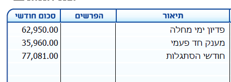| יתרת ימי מחלה | הפרשי שכר עבור חודשים קודמים |