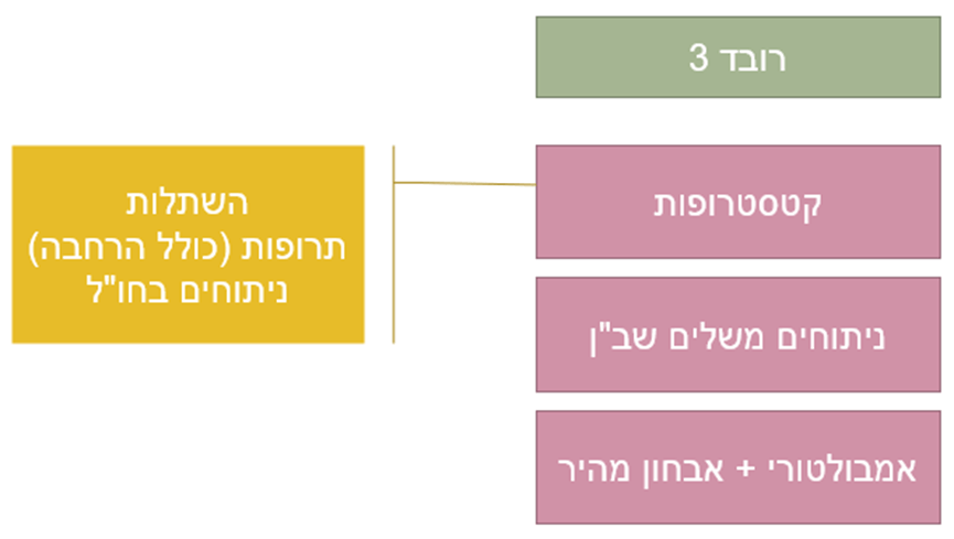 ברובד השלישי המבוטח מחזיק בביטוח בריאות מסחרי הכולל רובד קטסטרופות המורכב מהשתלות, תרופות (כולל הרחבה), ניתוחים בחו"ל. מעבר לכך מחזיק בביטוח ניתוחים בישראל משלים שב"ן, בכיסוי אמבולטורי ובכתב שירות אבחון מהיר.