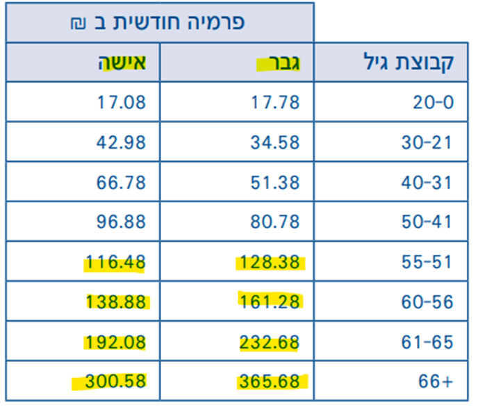 4. הוסיפו משלים שב"ן עם השתתפות עצמית 5,000 שח מה שיוזיל את הכיסוי ותן מענה לעלייה חדה במחיר עבור מי שעבר את גיל 50.