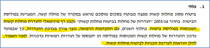 2. לעדכן את הגדרות המינימום כך שיהיו תואמות להתקדמות הרפואה.