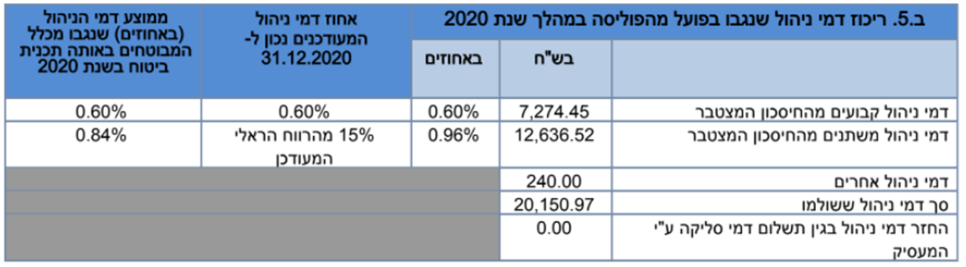 לצורך הדוגמה, חוסך עם 1.2 מליון ש"ח שילם בשנת 2020 דמי ניהול בגובה 20,000 ש"ח. מרביתם רק בגין הרווחים שנצברו בפוליסה.