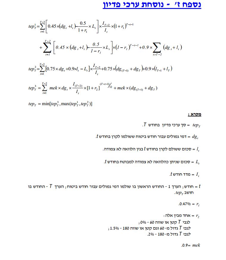 ובנוסף לכך הסכום יחושב בהתאם לנוסחת ערכי הפדיון שמופיע בתקנון האחיד של קרנות הפנסיה הותיקות (לקריאה).