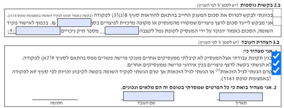 טופס 161 חלק ב משיכת כספי פיצויים פטורים