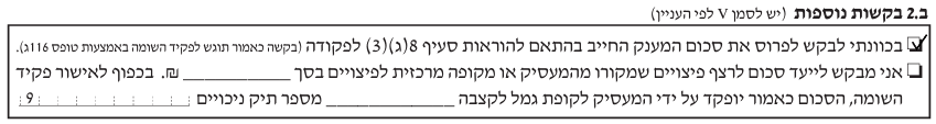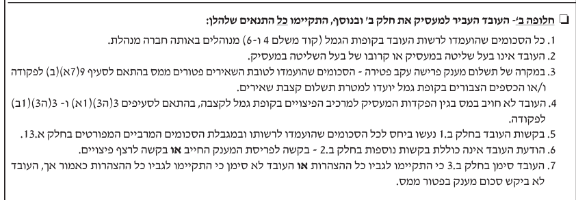 6. בקשות העובד בחלק ב.2 לא כוללות בקשות מיוחדות כמו פריסת מס או רצף פיצויים
