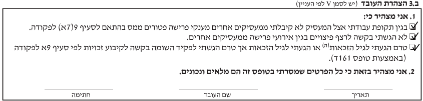 התנאים לאישור טופס 161 החדש על ידי המעסיק