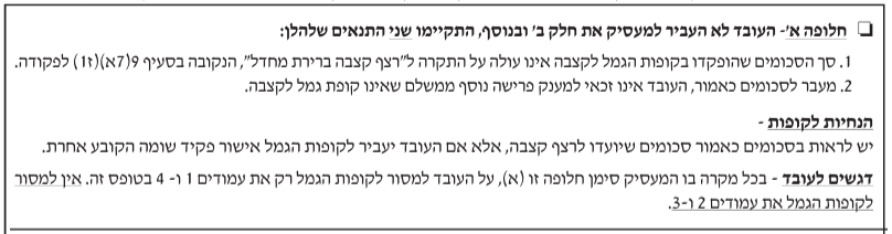 באחריות העובד למסור את הטופס לקופה לצורך בחירה ברצף קצבה או משיכת הכספים.