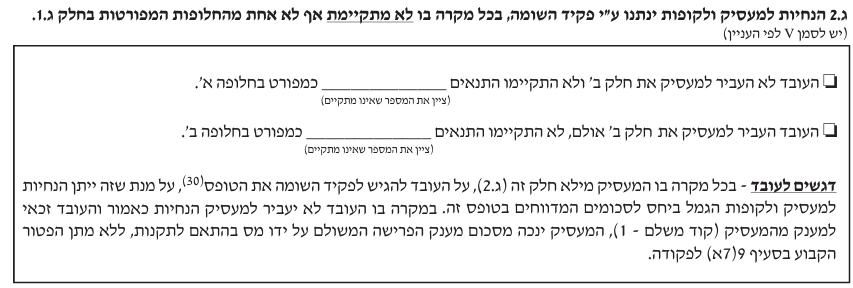 המעסיק יפרט בחלק ג.2 את סיבת ההפניה לפקיד השומה ויציין באיזה תנאי העובד לא עומד.