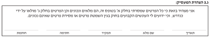 לאחר סיום מילוי חלק ב' יחתום העובד על הטופס ויחזיר אותו לידי המעסיק כדי שיחתום על חלק ג'.