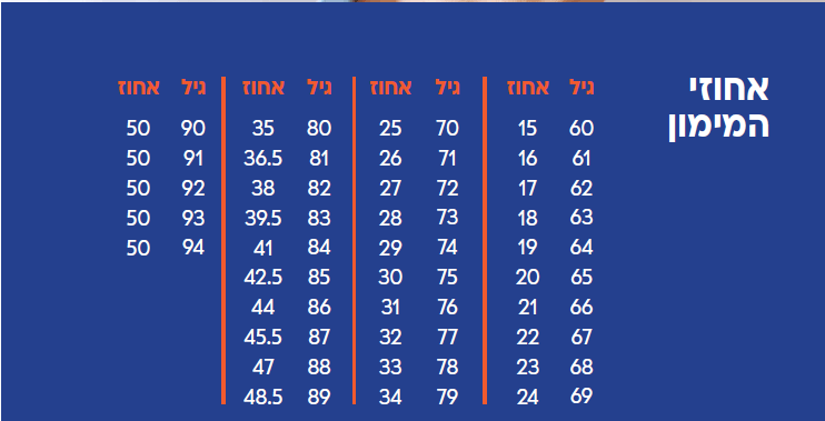 טבלת אחוזי מימון של משכנתא הפוכה בפניקס
