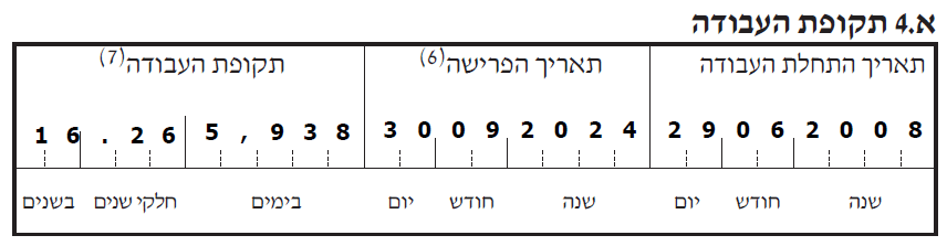 דוגמה לסעיף א.4 הכולל את תקופת הוותק בעבודה