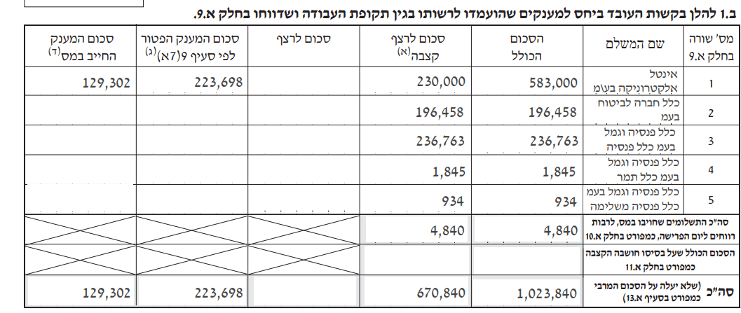 דוגמה לסעיף א.9 הכולל את המענק מאינטל