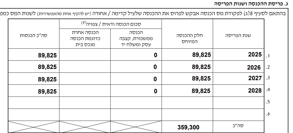 דוגמה לטופס 116ג – טופס פריסת הכנסה
