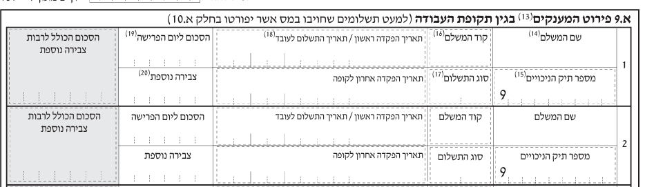 - בסעיף זה אין לציין כספים שהופקדו ובוצעה עבורם זקיפת שווי – כספים אלה יש לציין בסעיף הבא (א.10).