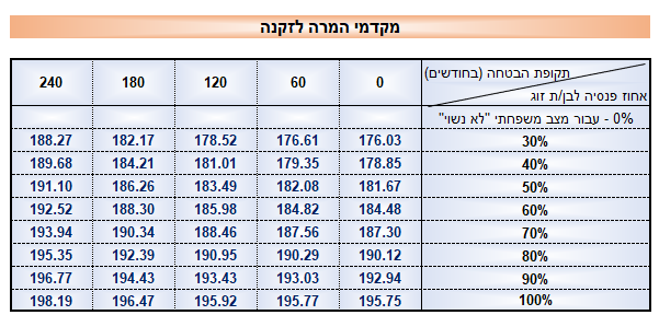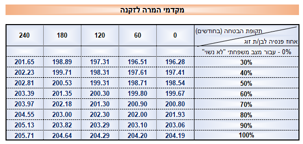 טבלת מקדמי קצבה לפי שנים לאישה נשואה