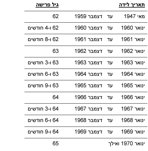 גיל פרישה לנשים משתנה בהתאם להעלאת גיל הפרישה.