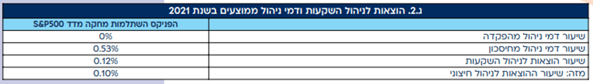 וכך זה נראה בעבר בדוח השנתי של קרן ההשתלמות של הפניקס, הוצאות ניהול השקעות במסלול מחקה מדד עמדו על 0.12%.