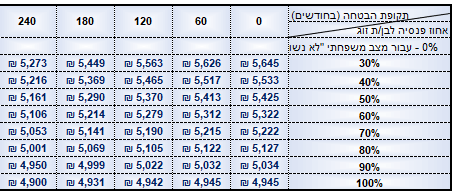 והפגיעה בקצבה לעומת המצב הקודם נעה בין 15 ש"ח במסלול שמבטיח 30% לבן הזוג ועד 9 ש"ח במסלול שמבטיח 100% לבן הזוג.
