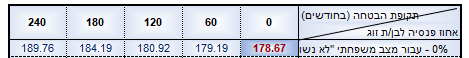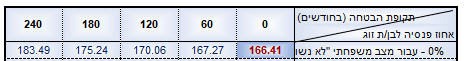 המקדם לרווק ללא תקופת הבטחה הוא בערך 170 זה נמוך משמעותית מהמקדם של גבר נשוי (למעט כזה שישאיר לאשתו רק 30%)