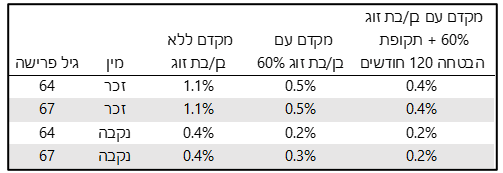 עיקר השיפור בתוחלת החיים הוא על גברים ולכן עיקר השינוי חל על גברים שפורשים במסלול ללא בן זוג, ככל שאחוז לבן הזוג יהיה גבוה יותר. כך הפגיעה קטנה יותר.