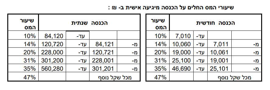 מדרגות המס החדשות על הכנסה מיגיעה אישית