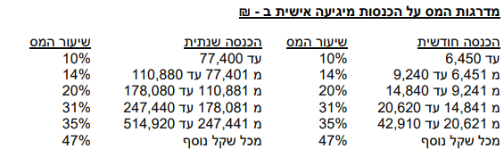 | מס בהתאם למדרגה 10% | 600 ש"ח |