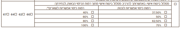 | אחוז כיסוי לאבדן כושר עבודה | אחוז כיסוי לשארים | |