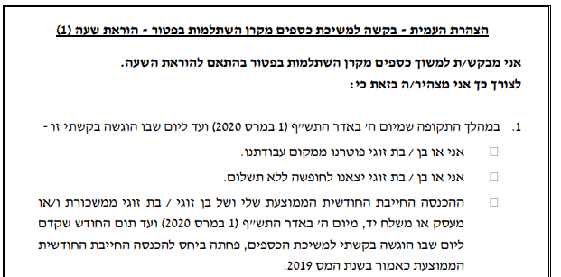 >>>קריאה נוספת על הוראת השעה למשיכת הכספים מקרן ההשתלמות לפני הזמן