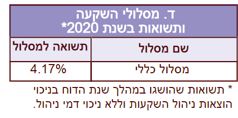| קרן | תשואה | איזון אקטוארי | תשואה כוללת |