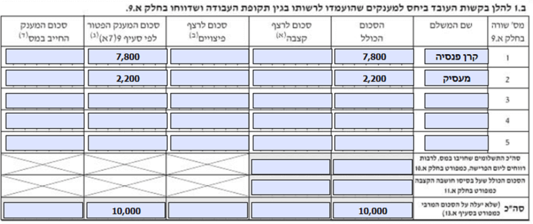 כדי למלא את הטופס עליכם להעתיק את הסכומים מחלק א.9 אל הטבלה במופיעה בחלק ב.1.