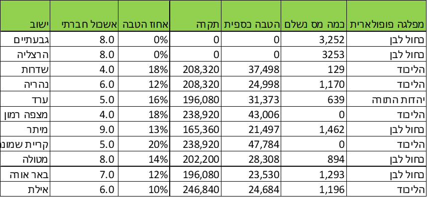 יש בעיות בישובים האלו עם הטבות מס גדולות: