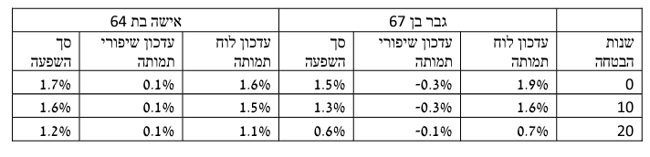 המקדם לגברים נשויים צפוי לעלות מכיוון שההשפעה של השיפור בתוחלת החיים לנשים גבוה יותר מהקטנה שבוצעה לגברים.