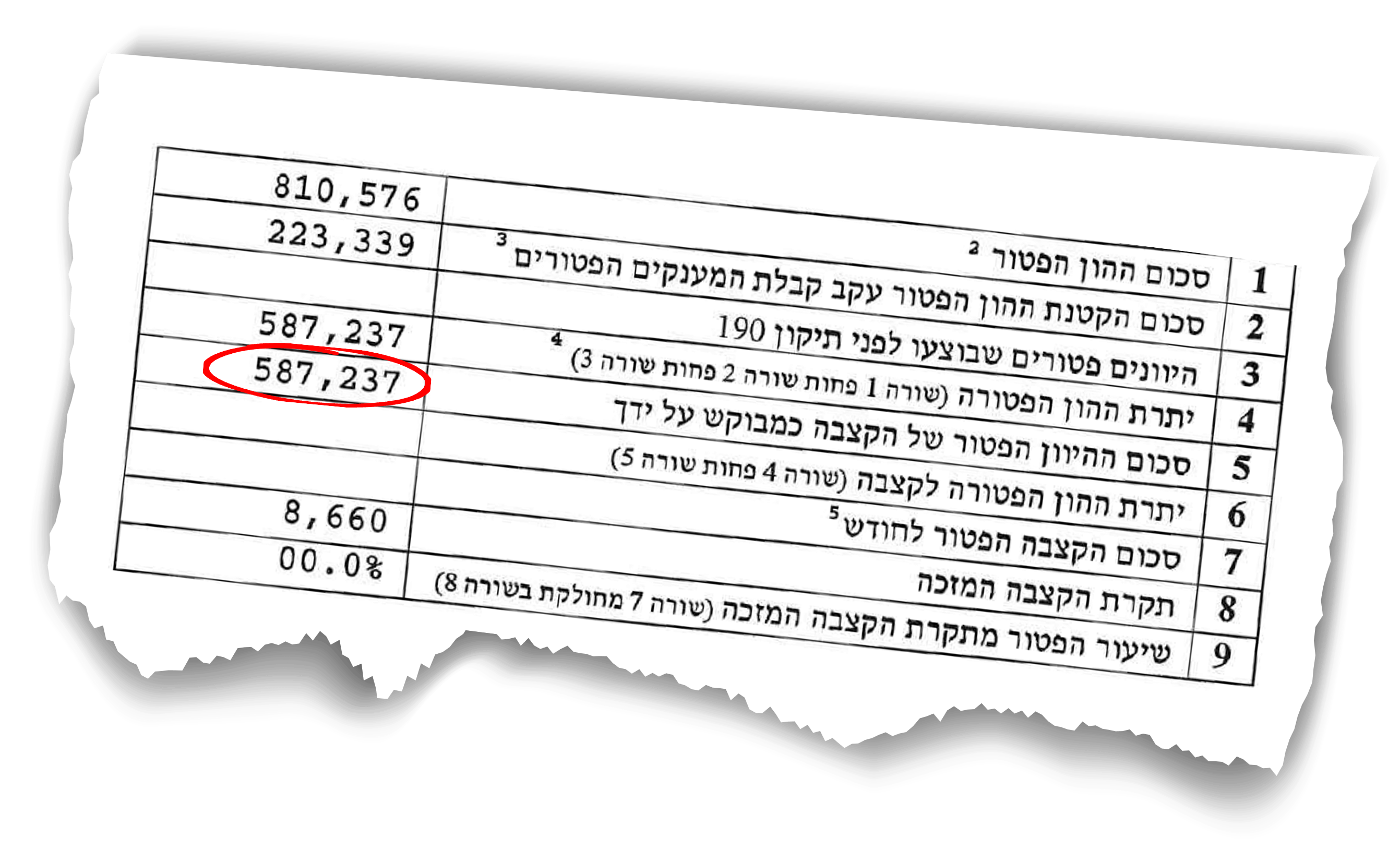 | סכומים נזילים | 0 | 900 אלף ₪ חייב במס |